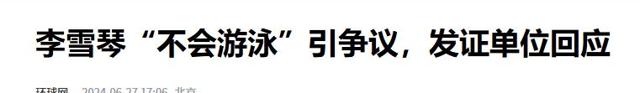 环球网——2024年6月27日——李雪琴“不会游泳”引争议,发证单位回应