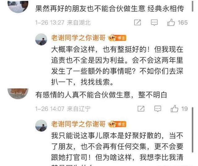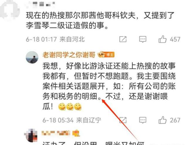 在谢田飞爆料的第二天下午,李雪琴工作室对此事做出了回应。