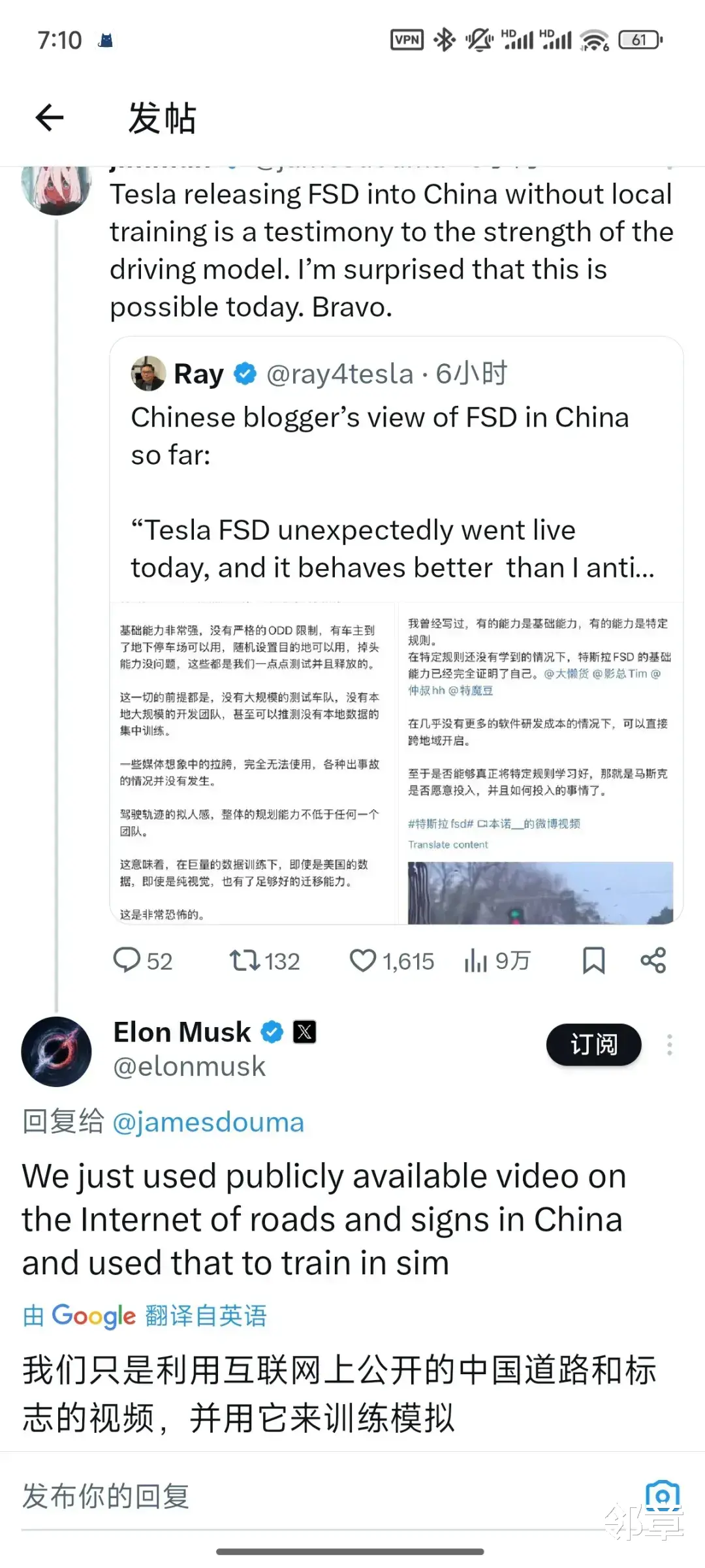 要真正判断FSD在中国市场的能力,再怎么也得让FSD真正能够利用中国实际道路数据进行训练进行OTA更新后,再来判断FSD的能力也表现不迟。