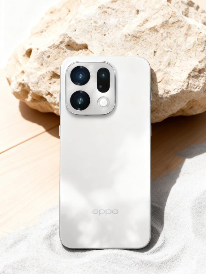 比如这款「霜白」配色,这次OPPP在工艺上玩出了新高度——独创的绒砂工艺让玻璃背板摸起来如同细腻的天鹅绒,温润亲肤还彻底告别指纹烦恼;纯净的白色机身与镜头模组无缝衔接,仿佛一件精心雕琢的艺术品。