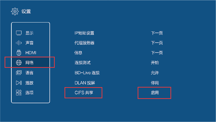 通过网络接口给G5800蓝光机连上局域网,确保与NAS在同一局域网下: