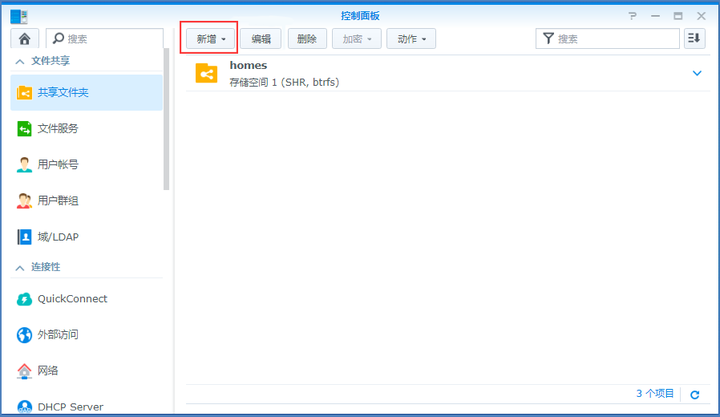 路径是:控制面板 → 文件服务 → 新增共享文件夹 → 命名