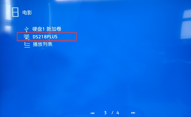 3 识别到NAS后,点击进入即可访问刚才设置好的SMB共享权限的文件夹,影片资源一目了然,从此看片只需动动遥控器,所有片源随时调用,4K电影点开即播。