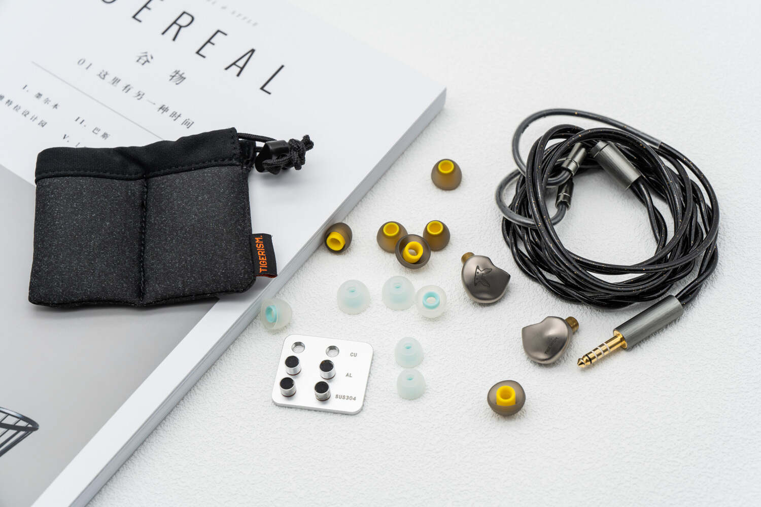 这条“新版”的地兔,采用了略微偏暖色的钛合金腔体,仍然小巧可人,腔体偏迷你,即使女生也可以轻松佩戴;导管设计为三种不同材质可更换,直观地以材质为区分,分别为铜、铝、不锈钢材质,其声音区别下面会聊到。地兔的标配线材为虎记标志性的“星光”4.4升级线,这根线也算是他家塞子身上常见的“老熟人”了。