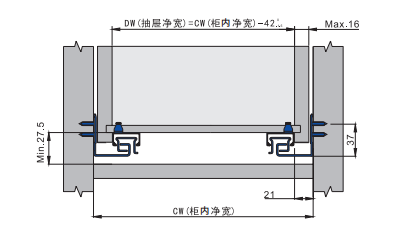 ②抽屉净宽=柜内净宽-42mm