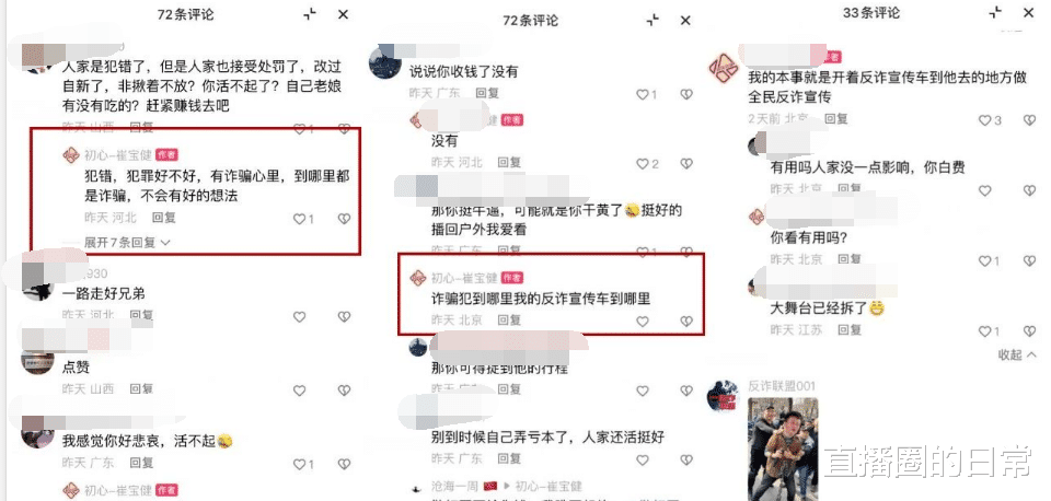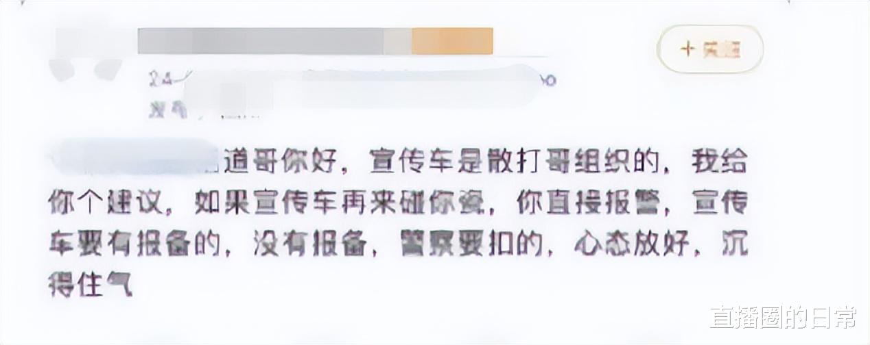祁天道的“道家”粉丝中有一人发言笃定地表示,反诈宣传车的幕后实际策划人是另一位主播“散打哥”。他呼吁祁天道保持冷静,在面对这类疑似“碰瓷”行为时,应直接通过法律途径解决,毕竟,任何未经报备的宣传车都可能会受到警方的严格审查。