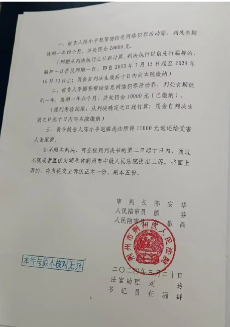 为了挽回损失张家碧第一时间向荆州公安分局报案,经过调查警方锁定了诈骗分子,陈小平、李娜等人,并于2019年11月将部分嫌疑人抓获。
