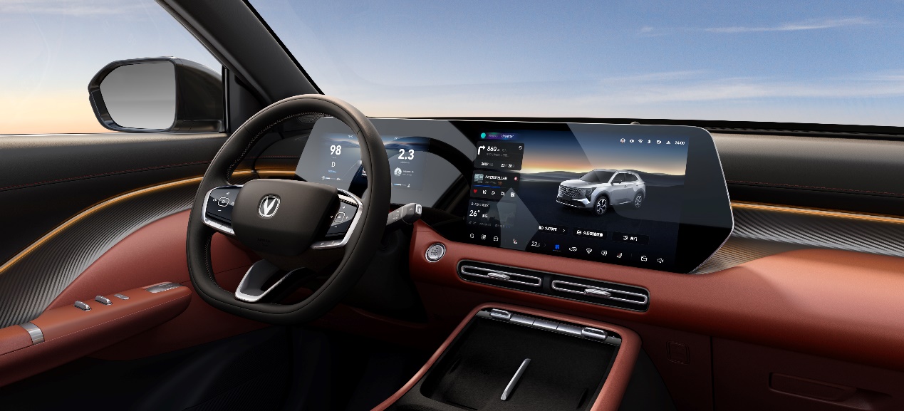 第四代CS55PLUS还将人文感温和地融入座舱内饰设计之中。环抱贯穿式座舱给人以踏实惬意的空间感受;内饰经过精细打磨的波纹纹理在光影变幻中呈现出独特而高级的质感;饰板精选高品质材料,不仅带来温润顺滑的亲肤体验,也在视觉上提升了整体内饰的奢华感; 1.7㎡的高级皮革软包面积,也进一步凸显了内饰的层次感和奢华品质。