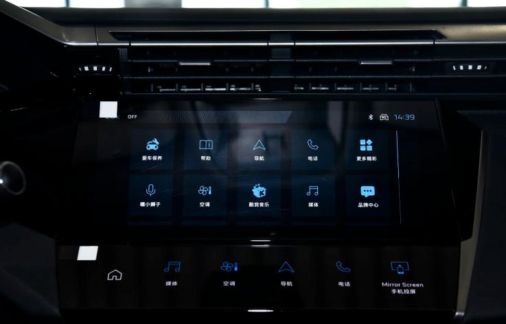 内饰方面,标致408X采用特立独行的座舱布局,用料偏生硬,中控台和车门饰板均采用大量搪塑材质进行包覆,只有少数区域看得见软性面料的覆盖,和早期的合资品牌在内饰用料上面没有明显差别。设计风格上,新车延续了老款的设计风格,双平底赛道方向盘位置靠下,盘幅上方的镂空区域刚好露出液晶仪表,便于驾驶者直观读取行车数据和导航规划信息。右侧10.25英寸中控屏采用了传统的UI界面布局,操作功能菜单清晰,但二级菜单较多,使用起来不算方便,且语音识别准确率不高,偶尔会误唤醒。