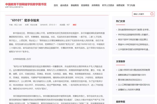 中国教育干部网络学院数字图书馆--测试标题abc“69101”密杀令始末