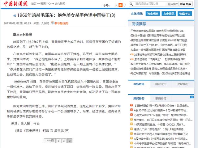 1969年暗杀毛泽东:绝色美女杀手色诱中国特工(3)-中新网