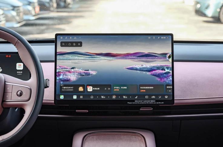 在细节上,我们结合本届成都国际车展亮相的日产N7玫瑰摩卡版本来看,新车保留了现款车型的家族化设计,包括隐藏式前脸、分体式大灯等。同时保持着富有辨识度的贯穿式LED灯带设计,日行灯两侧为L型灯组,内部集成710颗高功率LED光源,以及882颗OLED发光单元,通体点亮后铺光效果良好。此外,新车还配备了魔法画布前后灯组交互灯语系统,在交互趣味性方面,相信能够赢得一部分年轻人的喜欢。