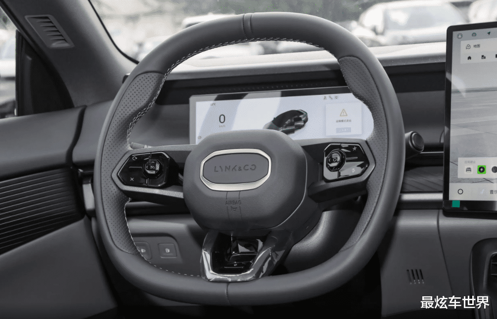 如果说领克07 EM-P的外观设计是比较个性的,那么在座舱的设计上,该车给人的感觉其实就比较“中庸”了。因为它的座舱设计和大多数的新能源汽车一样,采用了较为传统的设计,悬浮式的10.2英寸数字仪表加上15.4英寸的中控屏幕,保障了其车内的科技质感。而且在功能配置上,该车的中控屏幕也是相当的丰富,其中语音识别系统的语音识别精准率和完成度都是非常可观的,而且它还配备了高德地图导航,这也让我们日常的用车更加的轻松便捷。不过,座舱内领克07 EM-P也有一些缺点,那便是屏幕的流畅程度上,偶尔会有卡顿的情况出现。