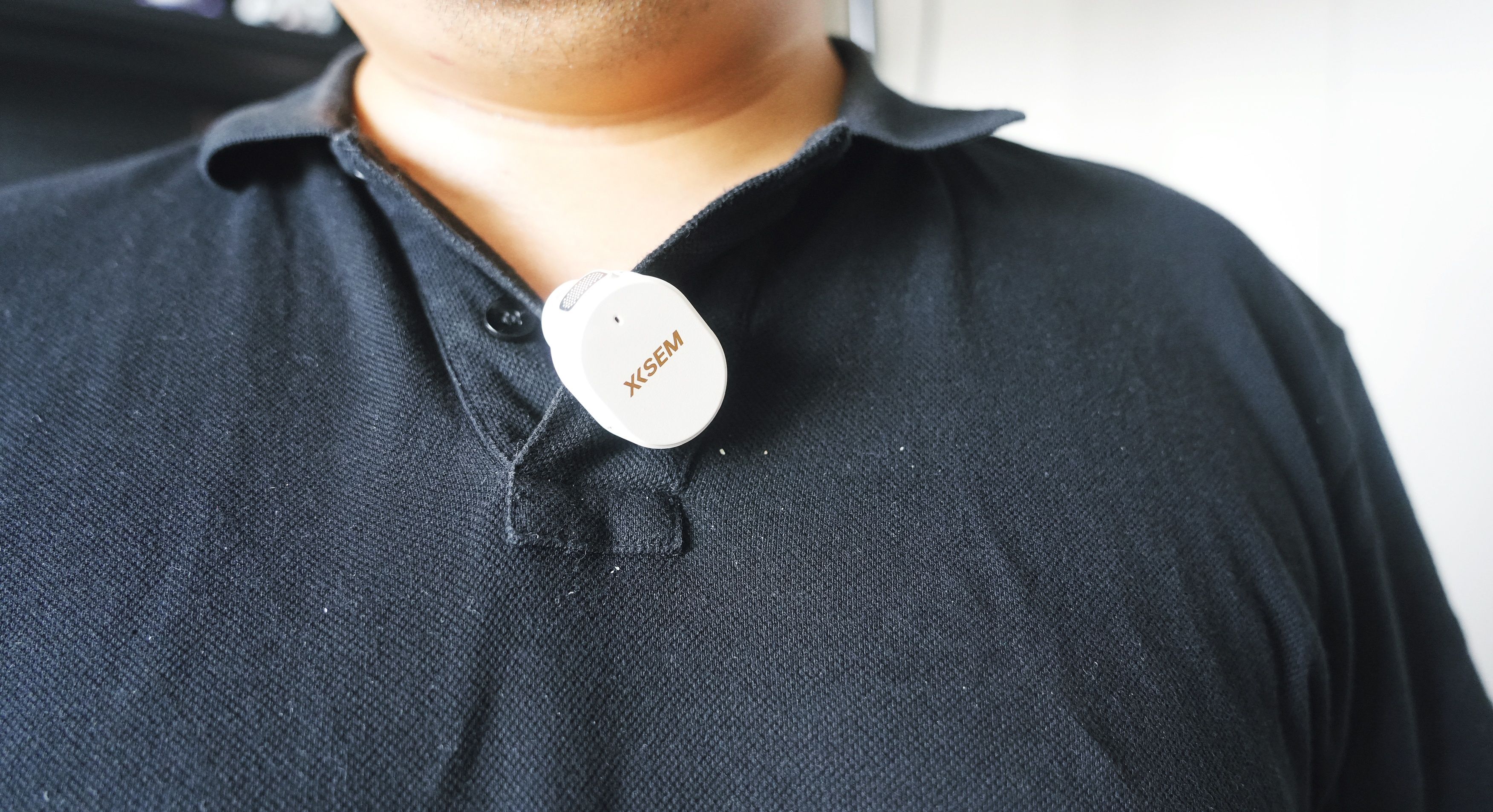 佩戴感是真的颠覆我对扩音器的认知。以前的挂脖麦重得像块小砖头,戴一上午脖子酸得要命,穿薄卫衣还总往下滑。西圣Bee小蜜蜂无线凌驾麦才20克,比孩子的橡皮还轻,我试过夹在卫衣帽子绳上、孩子手工围裙的小口袋边,甚至别在绘本的硬壳封面上——带孩子做户外观察时,跑着追他们也不晃不滑。
