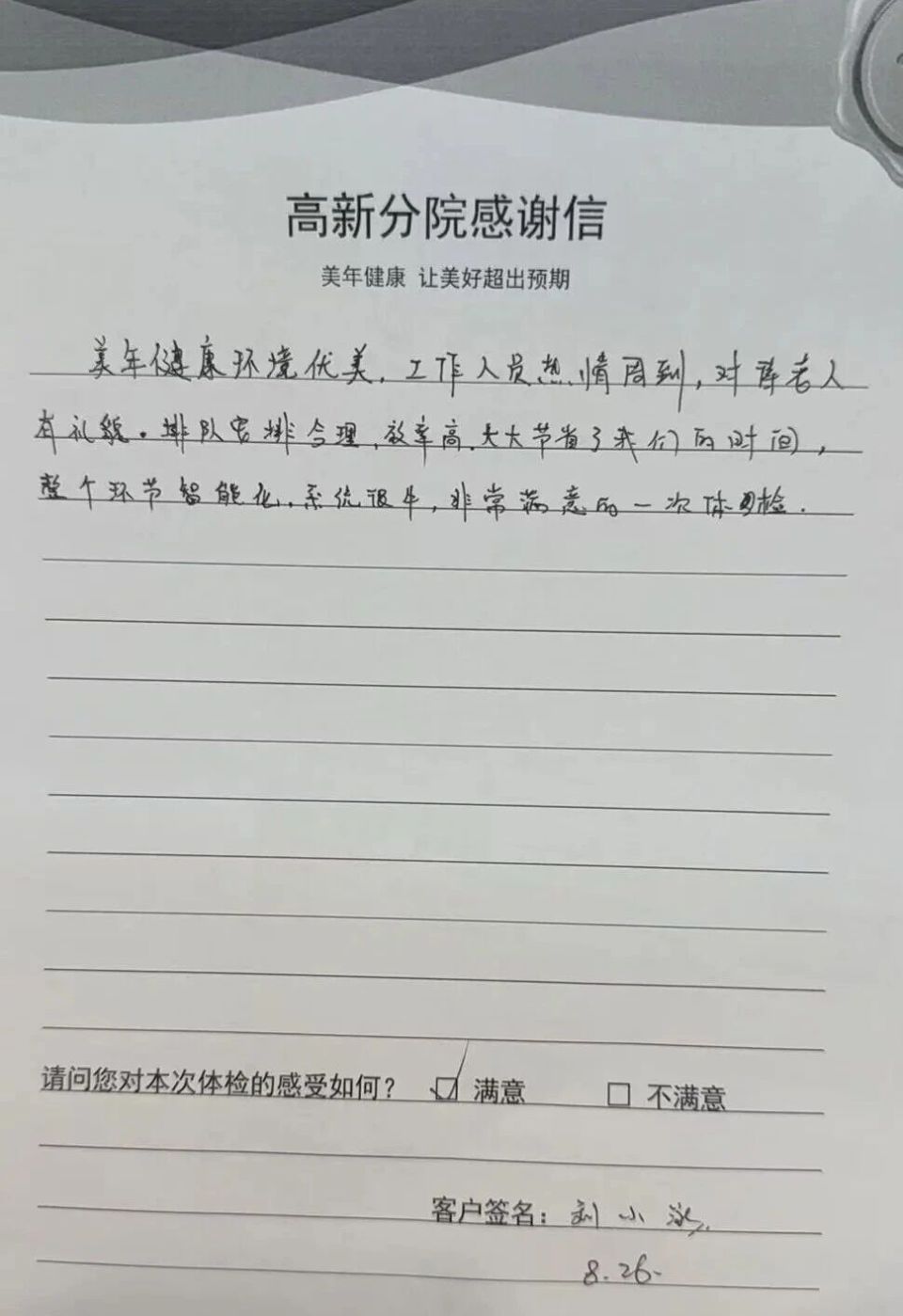 【高新分院・刘女士:智能化 + 老人关怀双在线,企业团检也能高效便捷】