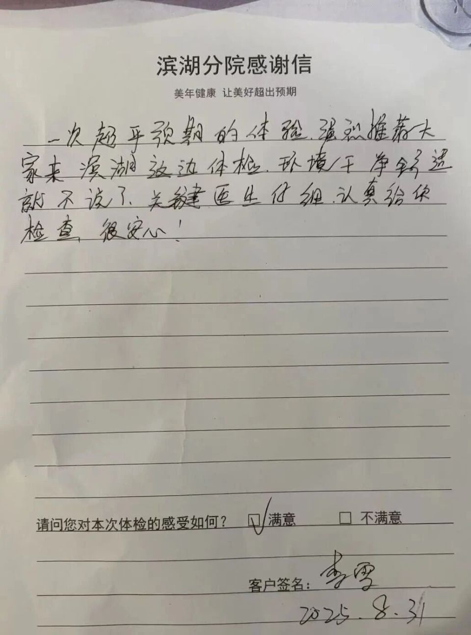 每封信都是合肥美年大健康的初心