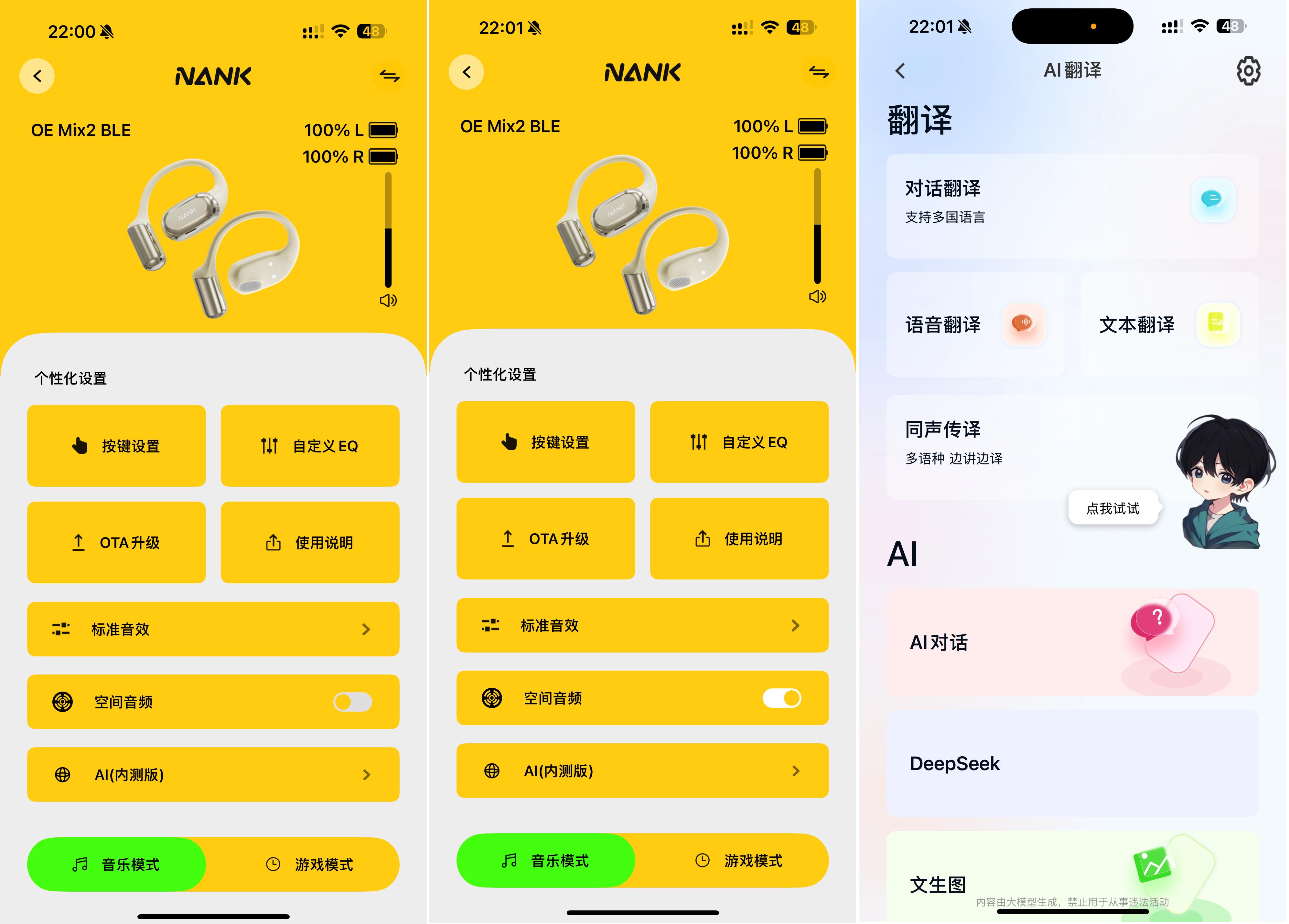 最让我惊艳的是南卡自研的AI智能系统。上周和国外客户视频会议,直接用耳机开启实时翻译,对方说的技术术语秒变中文,连专业词汇都翻译得精准到位。更贴心的是支持15种角色人设,切换成健身教练模式后,跑步时会实时提醒配速和心率,比手机App还方便。