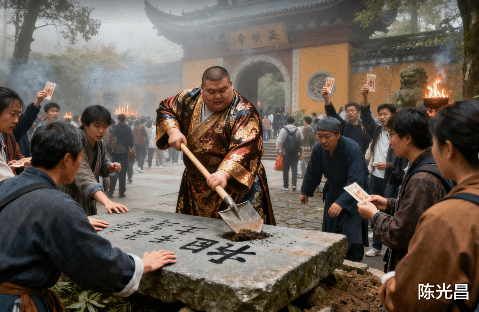 清晨的雾还没散,灵隐寺山门外就炸开了锅。一群香客围着块青石板吵得脸红脖子粗,有人踮脚伸手要摸,有人举着香火钱要拓字,还有个穿绸缎的胖子正指挥家丁搬来锄头,说要把石头整个刨回家镇宅。