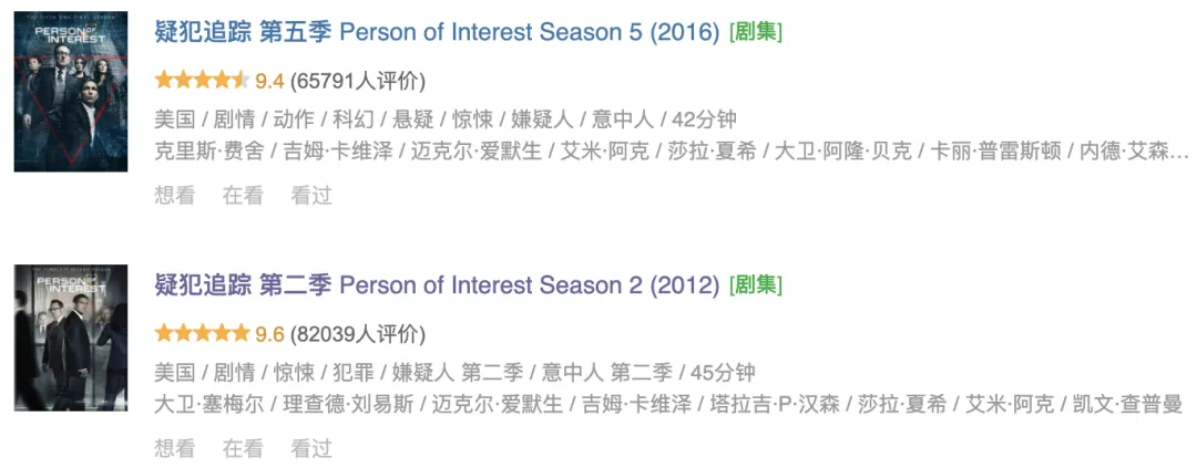 这是一部十年前的美剧《疑犯追踪》,豆瓣评分稳在9.3–9.6。