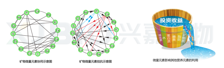 饲料配方是多种营养元素的精密组合,需协调微量元素之间及微量元素与常量元素、维生素、油脂等其他营养元素之间的协同与拮抗关系,以科学配伍规避拮抗、强化协同,最大化发挥微量元素营养价值。