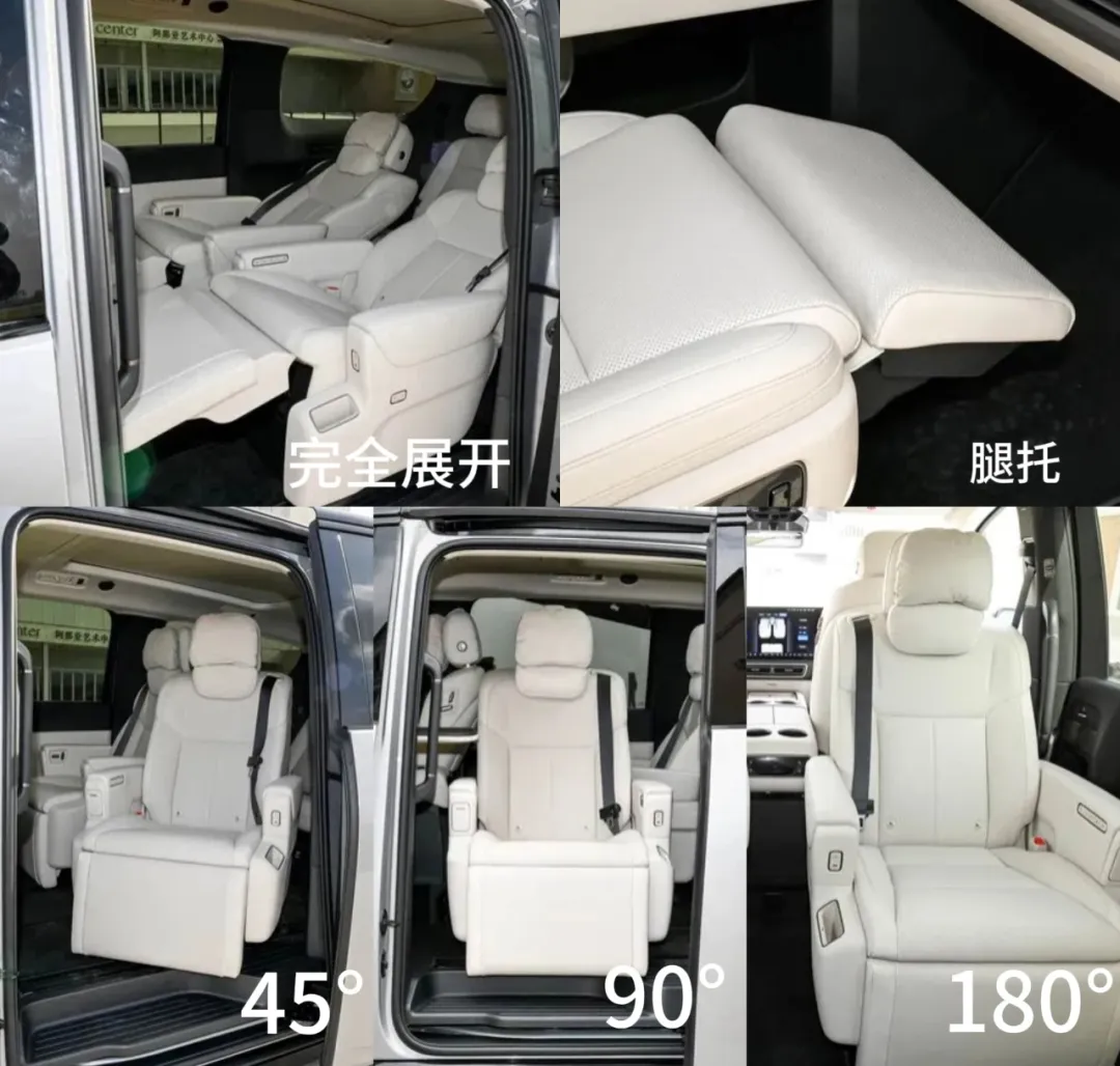 值得注意的是,MEGA Home的二排座椅通过语音或一键控制完全展开后,腰部夹角和腿部夹角分别能达到122°、130°,结合可伸展499毫米的四向悬浮腿托,可以实现完整的全身承托;同时,其支持45°、90°、180°等多角度旋转,以适配多种家庭使用场景。
