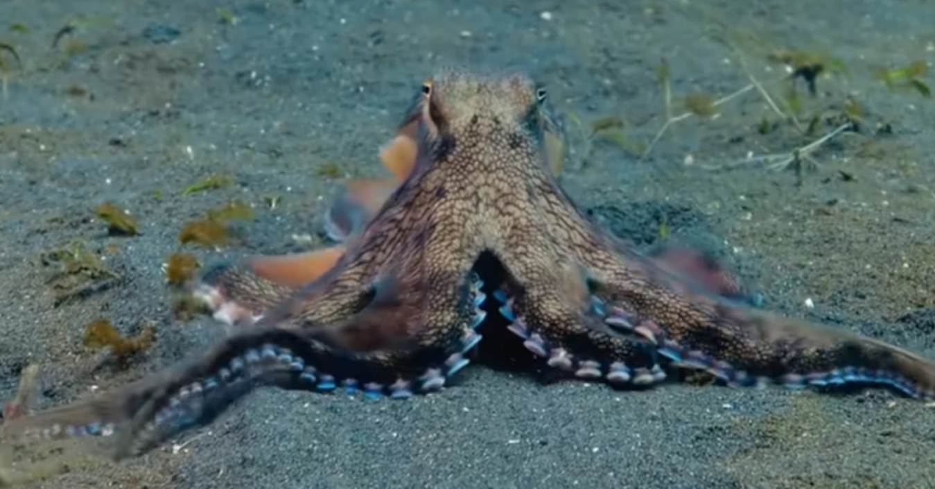 章鱼的血液呈蓝色,这是因为其血液中含有血蓝蛋白,其中的铜元素能让它们在极端环境下更有效地输送氧气。这些独特的生理结构让章鱼成为了海洋中的"异形"生物。在遇到危险时,章鱼能迅速改变皮肤颜色和纹理,完美融入周围环境。它们还会利用贝壳、椰子壳等作为掩护,甚至能模仿其他生物的行为。有研究表明,章鱼具备观察学习的能力,能够拧开瓶盖等复杂操作。