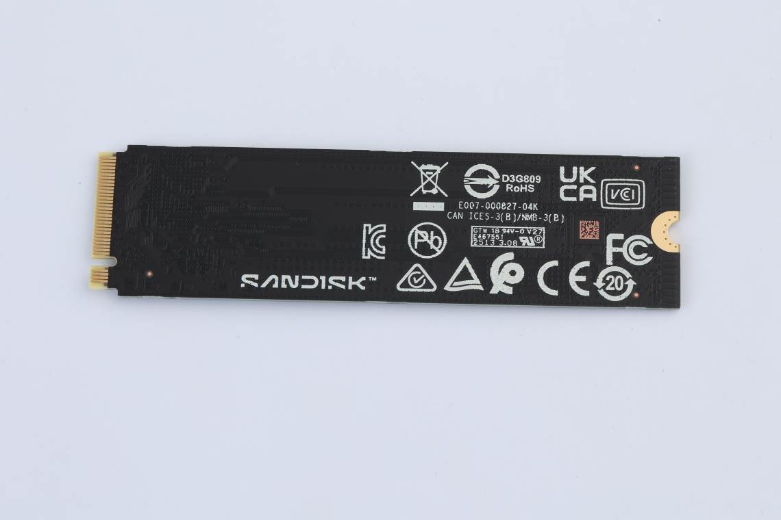 SN5100采用较为轻薄的单面M.2 2280规格,对散热性能进行了优化,降低了发热量。鉴于此,该SSD背面的PCB未安装任何器件,可适配传统台式电脑,且兼容部分轻薄笔记本电脑或mini PC。值得注意的是,PCB背面还印刻有“SANDISK”全新企业标识。