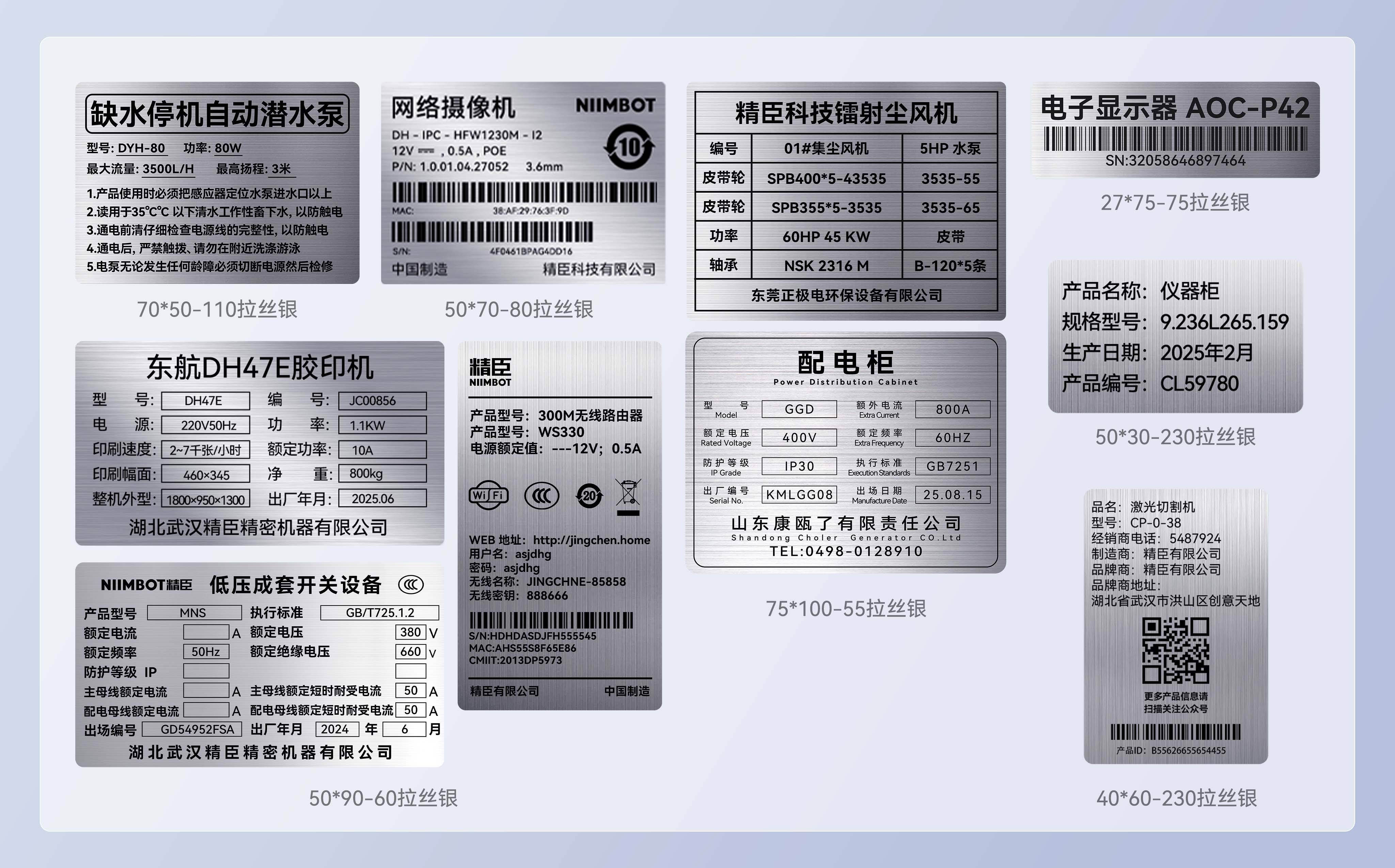 精臣拉丝银标签新品的推出,彻底打破了这一被动局面。该新品无需依赖批量采购,工厂只需根据自身需求,选配 5 丝、10 丝两种不同厚度的标签耗材,再搭配精臣 M3 热转印智能标签机,即可实现 “按需打印、即打即用”。其中,5 丝厚度的拉丝银标签质地轻薄、柔韧性强,适合贴附在电子元件、精密仪器等小型设备表面,或弧形、异形的设备外壳上,贴合度高且不易起翘;10 丝厚度的标签则具备更强的耐刮性与抗冲击性,能耐受重型机床、仓储货架等大型设备的高频接触与摩擦,即便长期处于车间油污、粉尘环境中,也能保持形态完整。