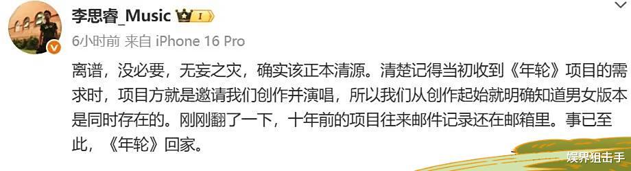 它直接把汪苏泷的“双原唱”定性为了一种“无意义的客套”。
