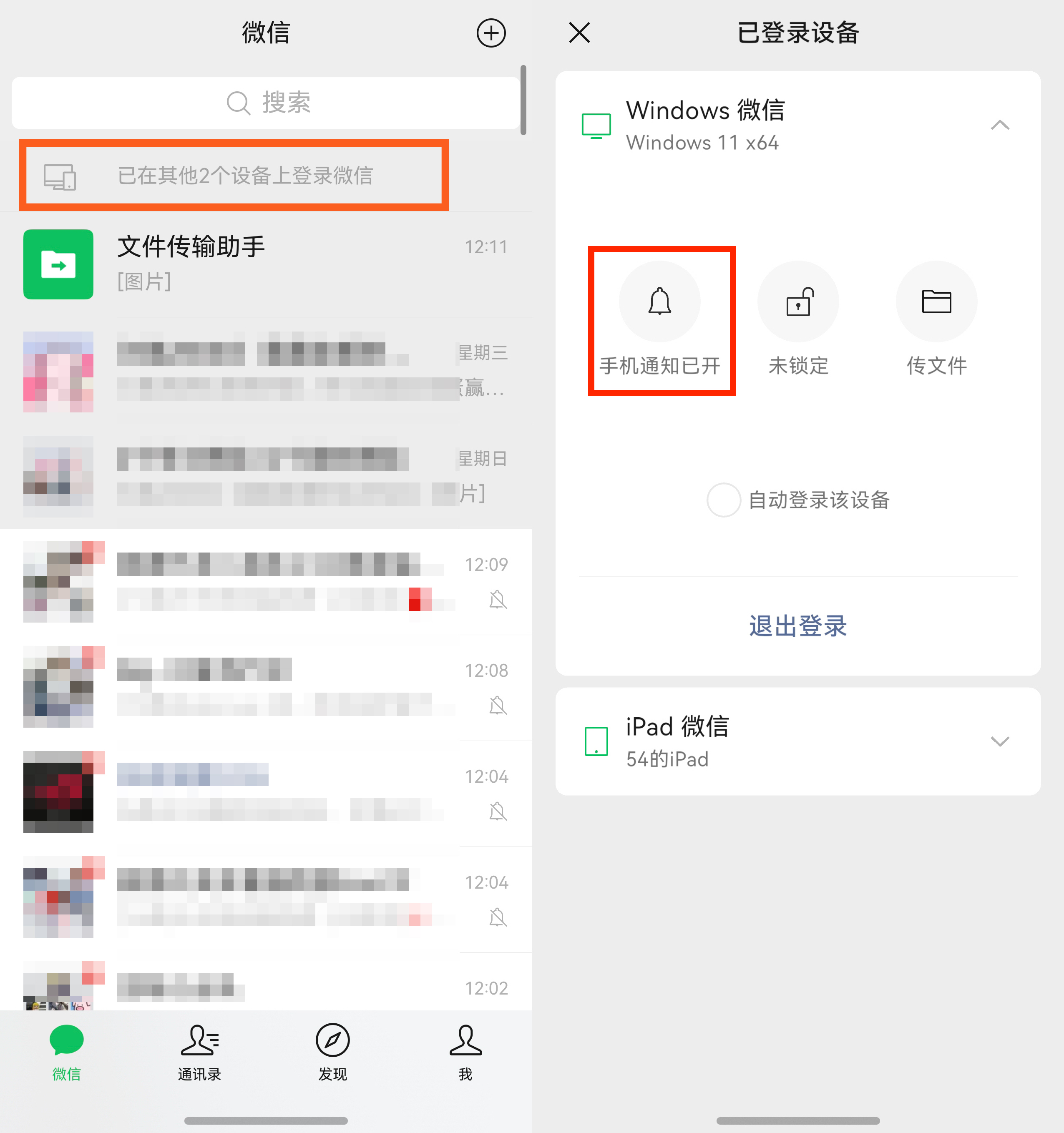 多端登录要调提醒!很多小伙伴习惯手机和电脑同时登录微信,这时候手机端可能会默认不提醒新消息,可以在微信聊天列表顶部找到“Windows微信已登录”的提示,点进去确认“手机通知已开”,不然手机可能不提醒。