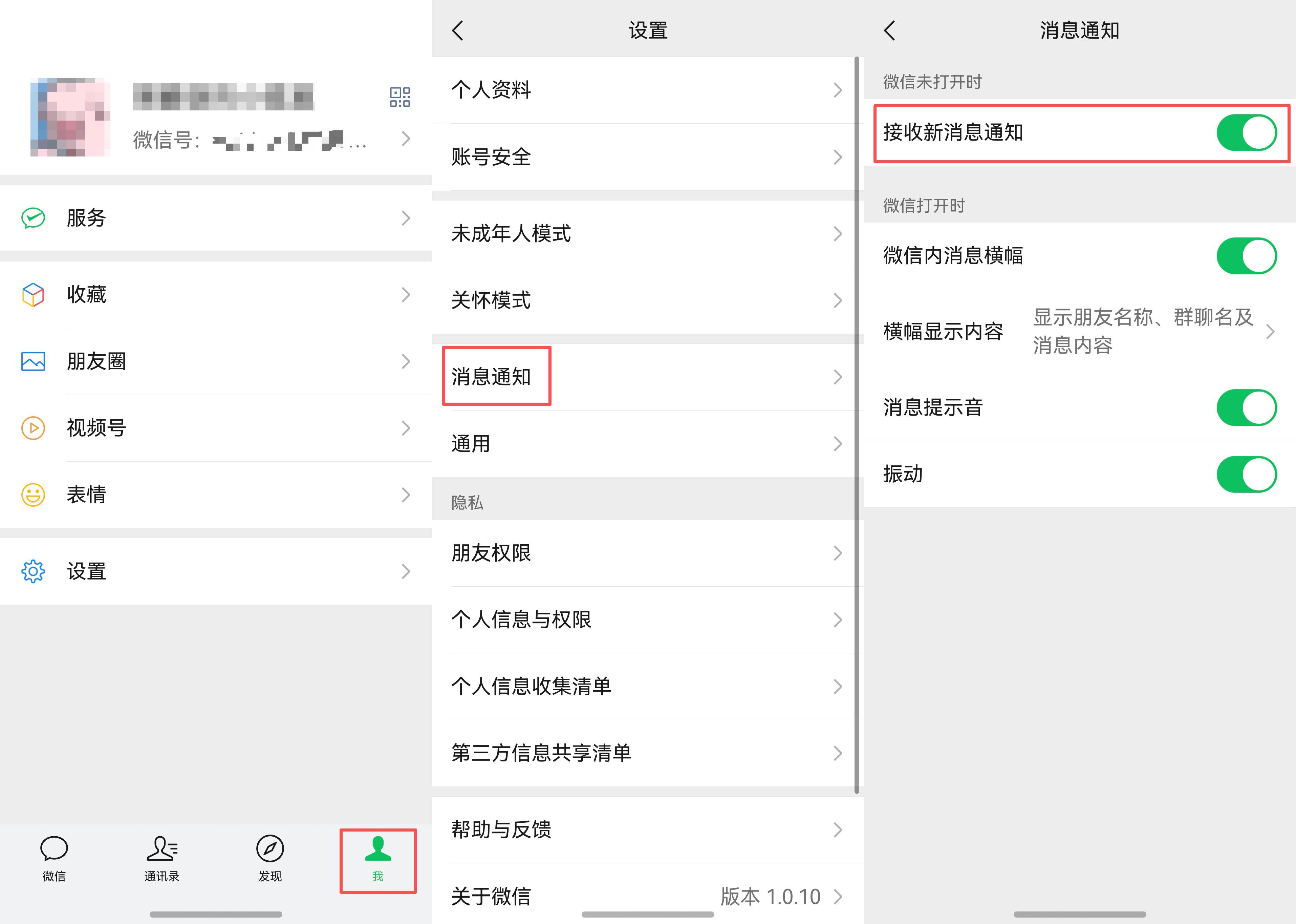 如果你发现微信消息迟迟不来,第一步可以先看看微信本身的通知开关是否打开。进入微信后,点击右下角的“我”,选择“设置”,再进入“消息通知”,确认“接收新消息通知”处于开启状态就行。