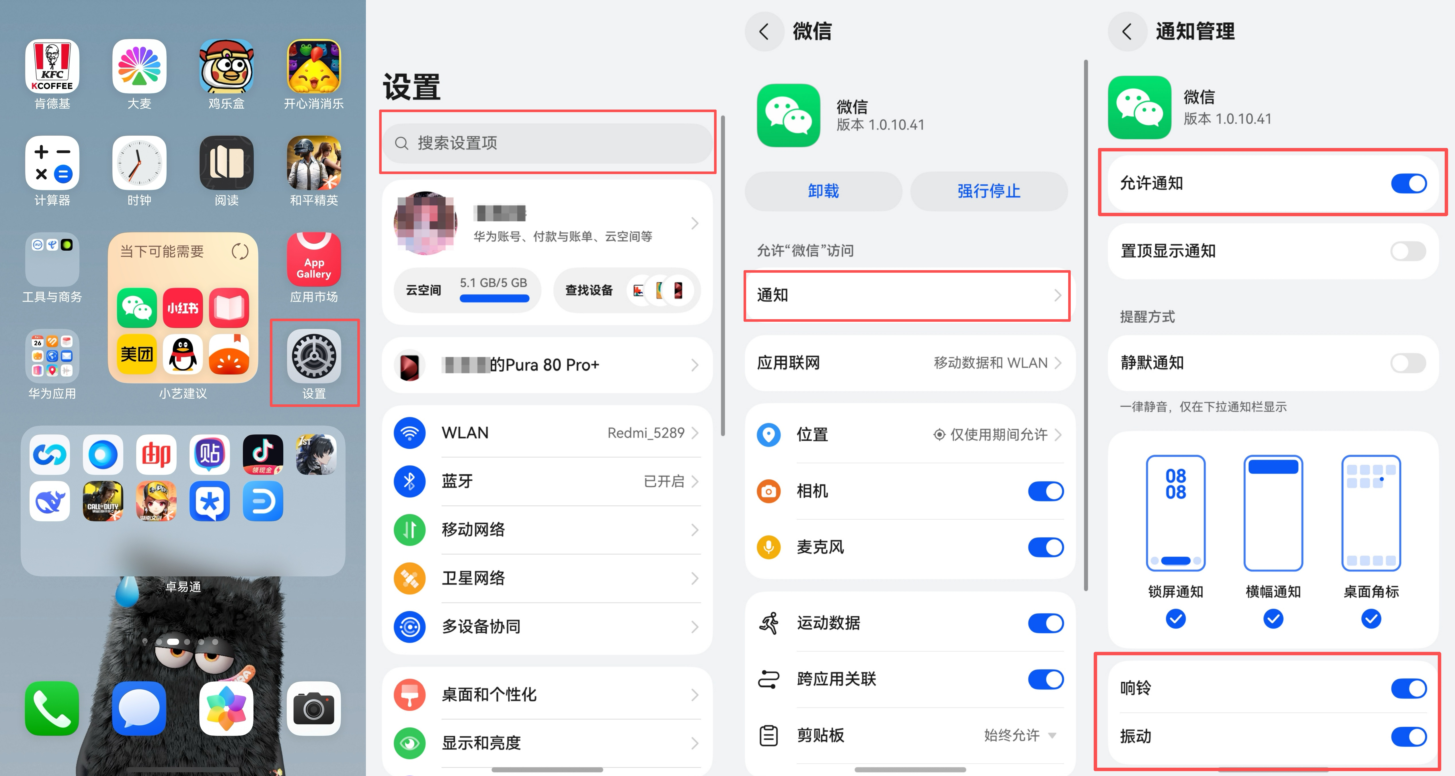 接着得看手机系统的设置,这步特别容易被忽略。在手机桌面打开“设置”,搜索“微信”后进入应用详情页,打开“通知”选项,确保“允许通知”是开启的,同时还可以根据个人习惯选择开启“响铃”或“振动”提醒。
