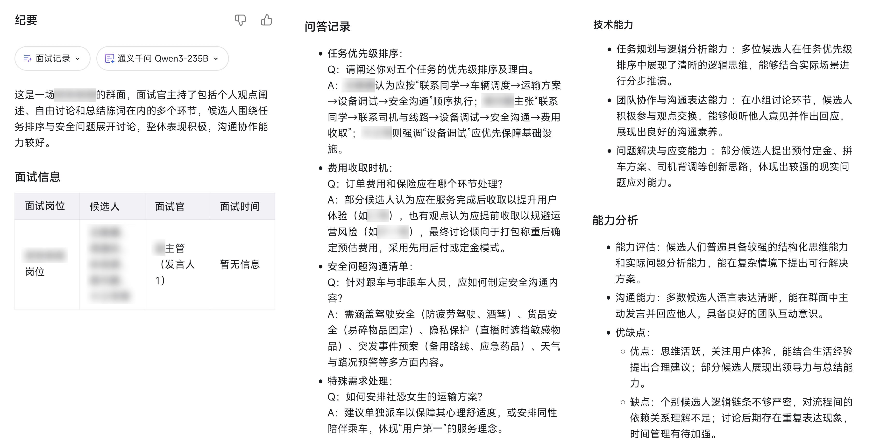 面试场景,无论你是面试官还是被面试者,都能借助DingTalk A1做出精准复盘。