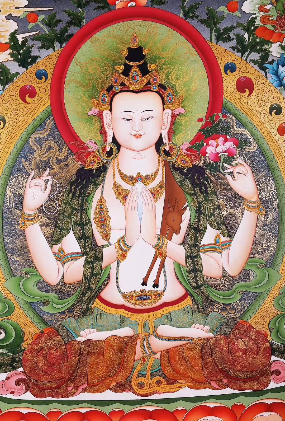 接下来请朋友们欣赏一组沃唐卡编号为158-151971的四臂观音唐卡: