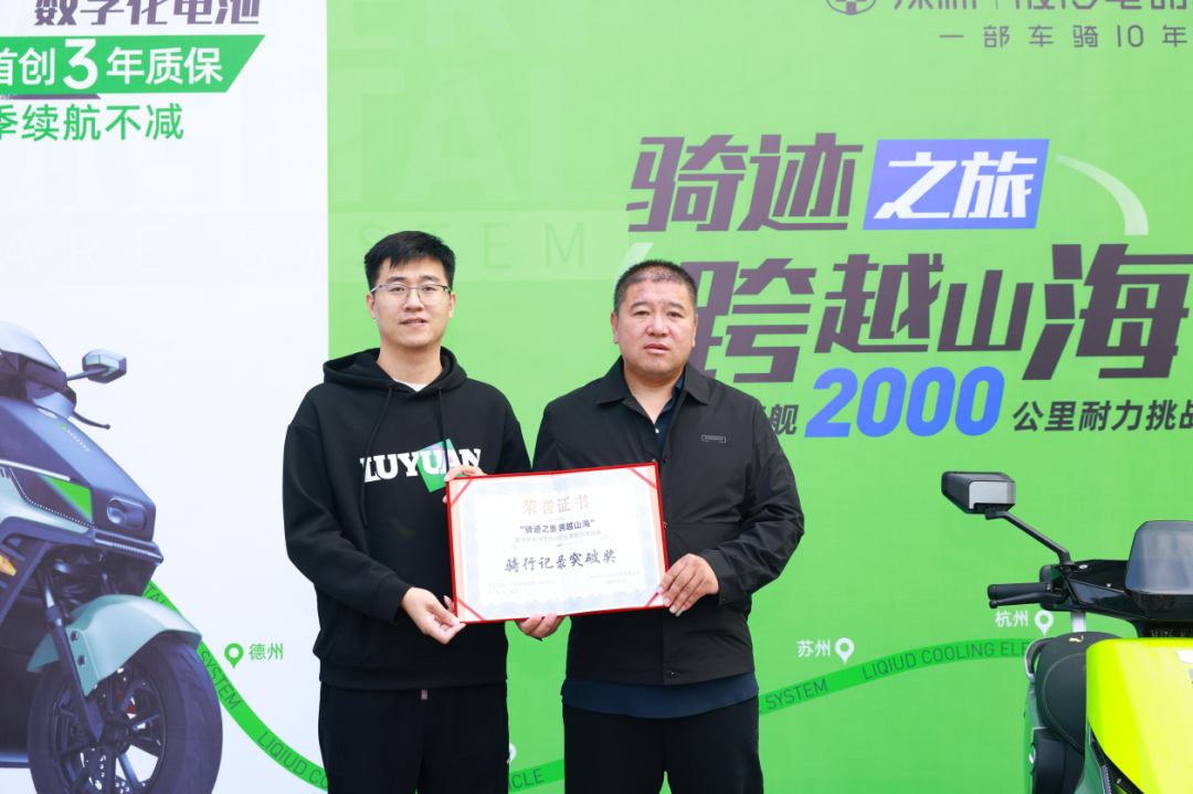由绿源经销商自行发起的“骑迹之旅 跨越山海”绿源数字化电池旗舰产品2000公里耐力挑战赛圆满成功。