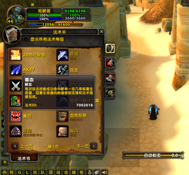 AK47,猎人的专属技能,技能伤害为神圣伤害,和装备与五维属性有关,并且还是范围性攻击,每次单体攻击都可以造成范围伤害