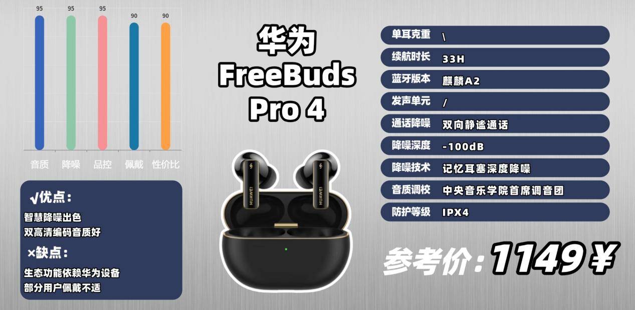 FreeBuds Pro 4 深度绑定华为鸿蒙生态,支持多设备无缝切换和头动操控等功能。非华为设备用户使用时,这些智能功能体验会受限。总体来看,它是对华为用户最友好的高端降噪耳机之一。