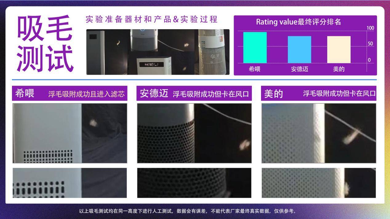 我们在三台机器前方50厘米、离地70厘米的高度撒上少量猫毛,模拟猫咪跳跃或梳理毛发时掉毛的场景。随后观察机器对毛发的吸附速度和效果——有没有直接吸进去?会不会堵在进风口?吸进去的毛会不会又飘回来?这样能更直观地判断设备在真实环境下的除毛表现。