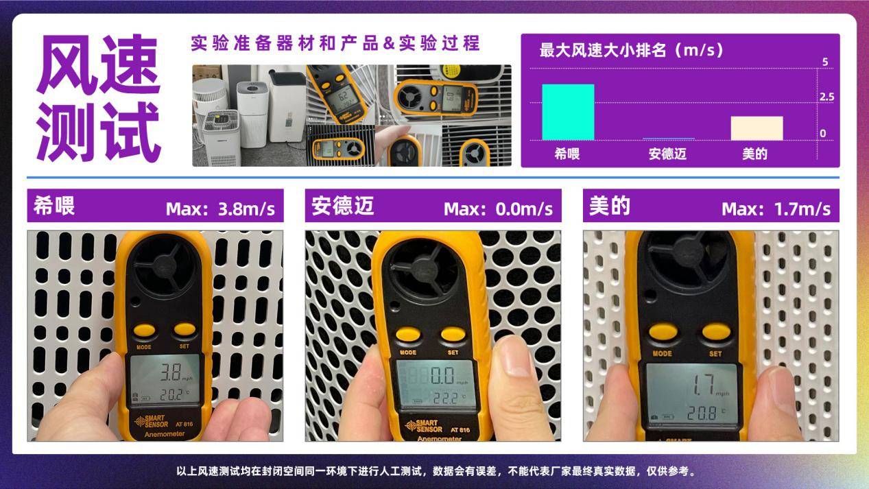 我们将三台机器都调到最大档,并在出风口前方约1厘米的位置使用风速仪测量。这个距离能真实反映出机器在最高档时的风力强度。测试时保持相同环境与距离,确保结果具有可比性。