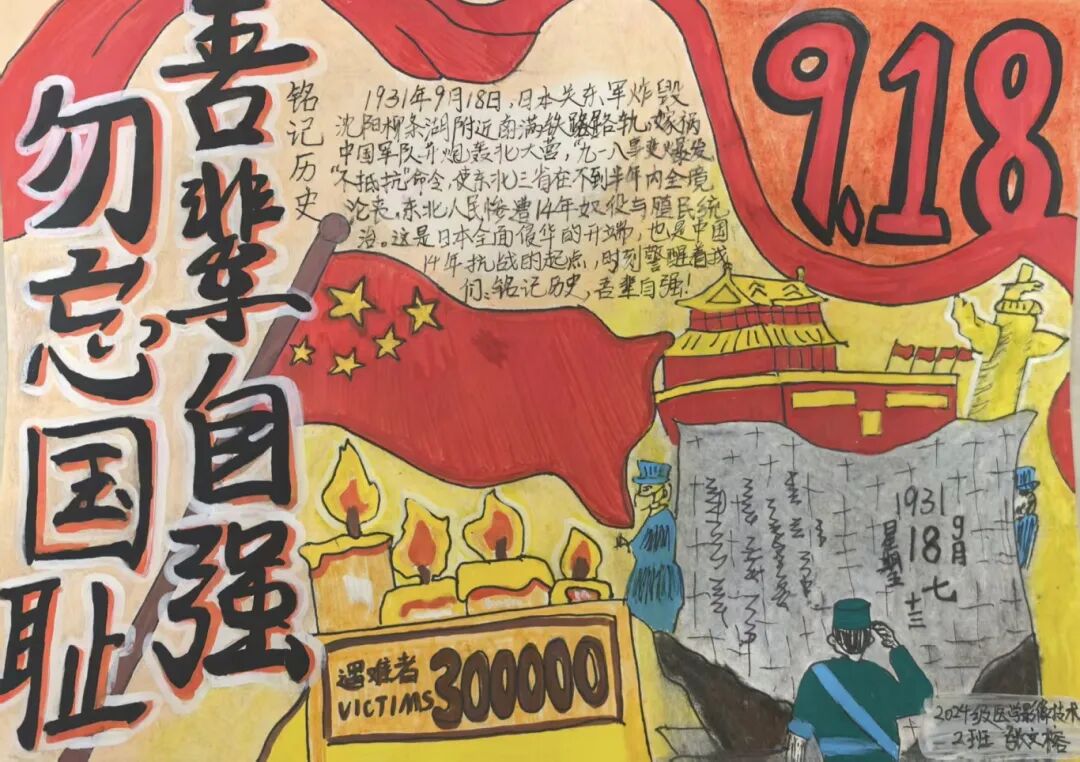 在"九一八"事变94周年之际,这场名为"铭记九一八,画笔诉担当"的主题画展,以艺术为笔,以历史为墨,在画布上镌刻下永不褪色的民族记忆。青年学子们用斑斓色彩重构历史时空,以遒劲笔触勾勒先烈浴血奋战的剪影;用淋漓泼彩渲染信仰的炽热温度。更有将抗战遗址与现代都市叠印的超现实构图,让历史回声与时代跫音在方寸画框内交响,当观者驻足画前,既能触摸到历史脉搏的沉重震颤,更能感受到青春力量在血脉中的奔涌传承。