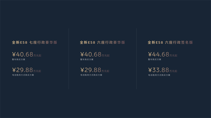 与预售价相比,正式售价降了1万元。全新ES8于8月21日开启预售,预售价格是41.68万-45.68万元。当然,BaaS模式下的正式售价低于30万元,看上去就更有吸引力了。
