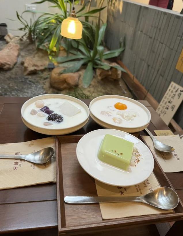 慢炖桃胶枇杷梨、鲜奶椰冻血糯米和椰香斑斓小酪是我们最喜欢的,甜品新鲜爽滑又细腻,颜值也很高。这里的用餐环境也很不错,只是座位不是太多,有时候需要排队等候。