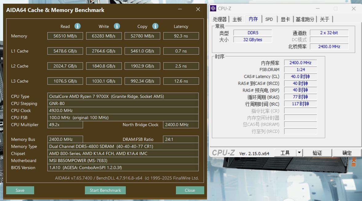 手动超频6300Mhz CL28作业参考——性能提升约15%▲▲▲针对内存手动超频,建议村民们一般用御三家为好,超频兼容性高,村民测这套内存用的微星B850MPower也是最近的超频小王子了!因为外置了时钟,所以超内存频率的同时可以超外频,所以能看到这次的6300Mhz这种罕见的频率;村民们可以参考一下。