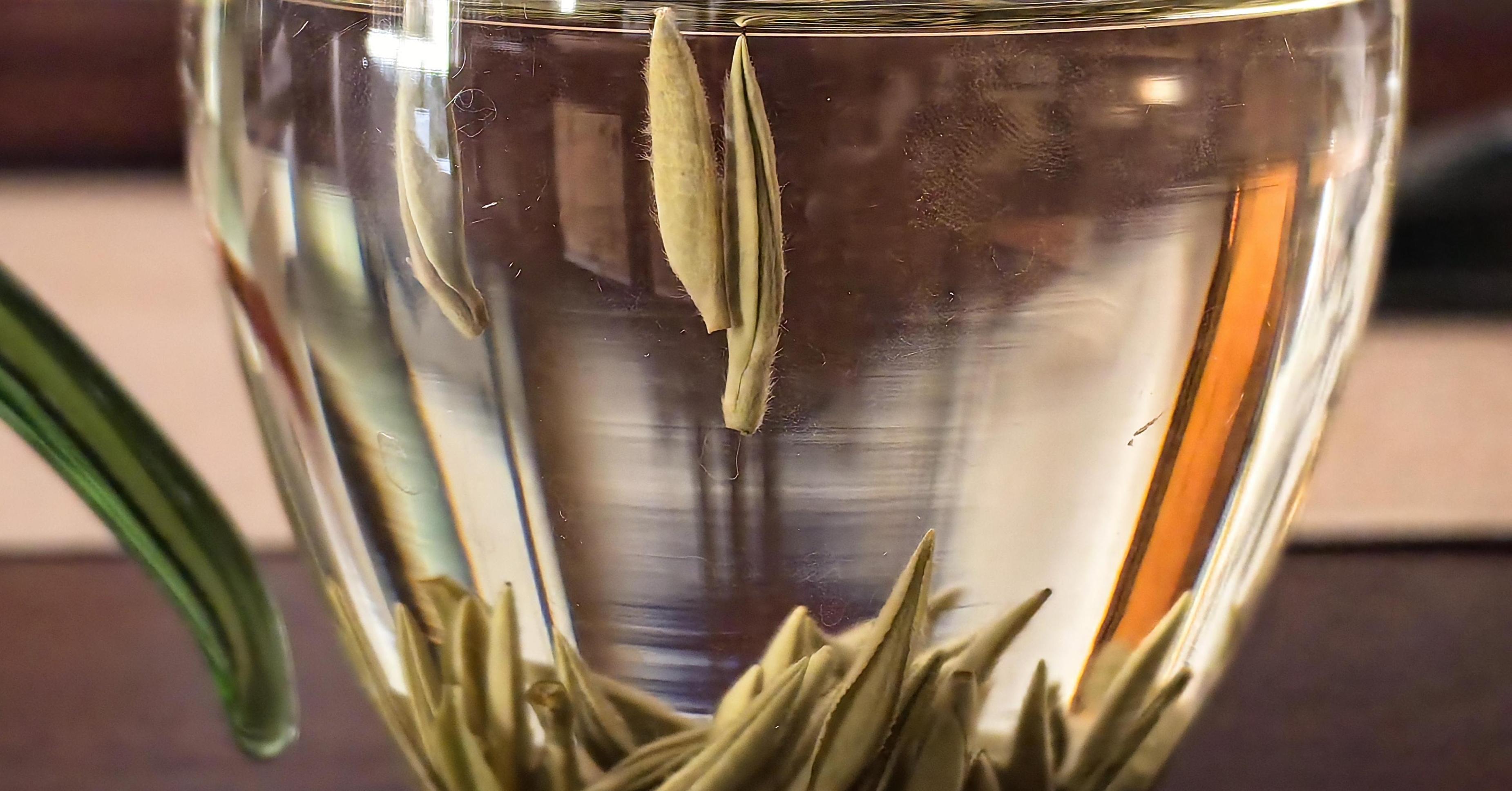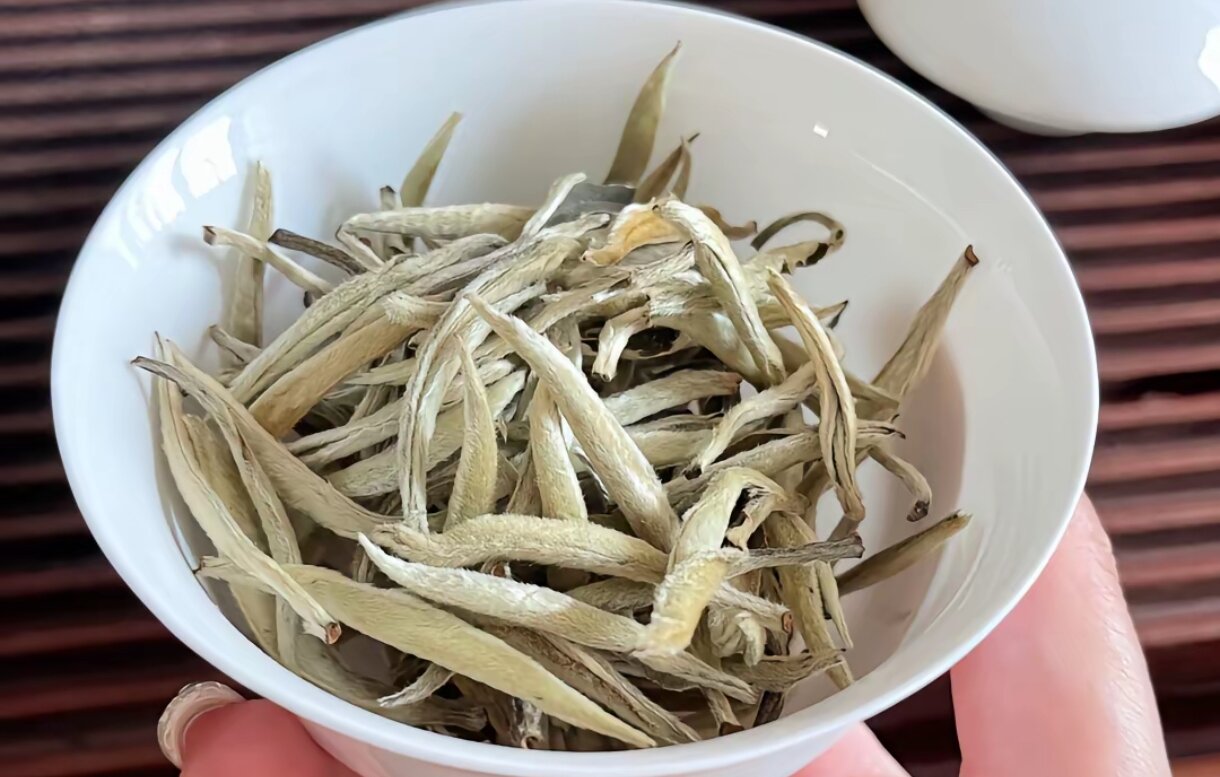 很多直播间把云南月光白当银针卖。记住:真银针的毫毛是灰白色,月光白的毫毛闪着银光,像擦了高光粉。