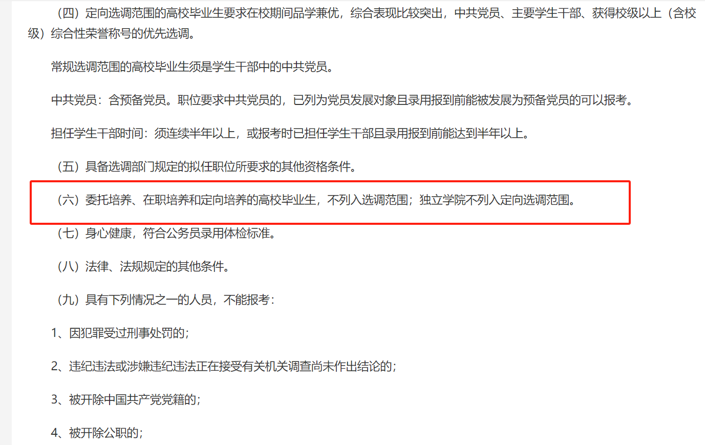 之所以会有这样的要求,主要还是因为独立学院和民办学院的考生在高考中的分数相对较低,整体实力和公办院校相比仍存在一定的实力差距,并非是选调生考试对独立和民办本科的歧视,而是本身民办本科就是高考扩招的结果,若是没有高考扩招,这批人几乎没有机会就读本科,这也算是为了筛选人才所设置的一类合理门槛吧。