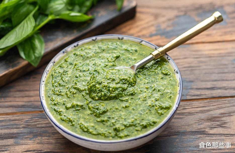 热那亚青酱:一种新鲜罗勒酱,与松子、帕尔马干酪、大蒜和橄榄油混合而成。