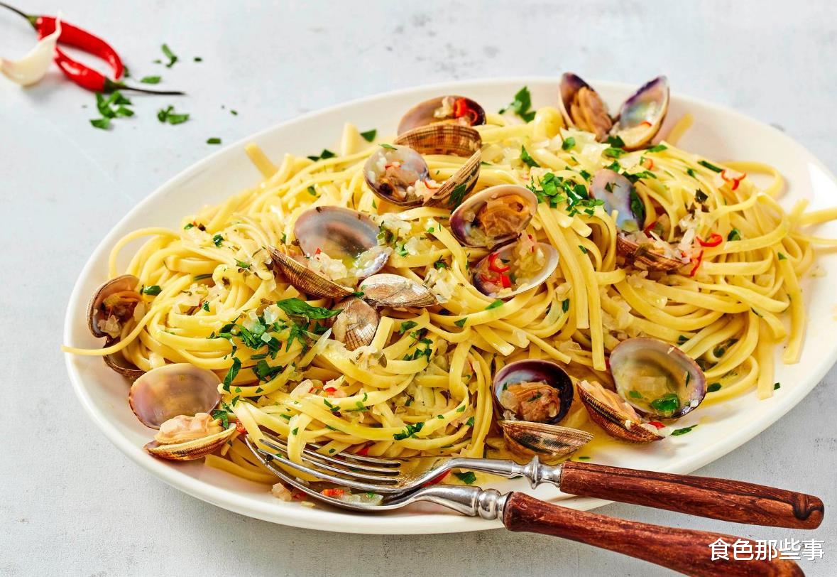 蛤蜊扁面:经典的意面菜肴,配有蛤蜊、大蒜、白葡萄酒和欧芹。
