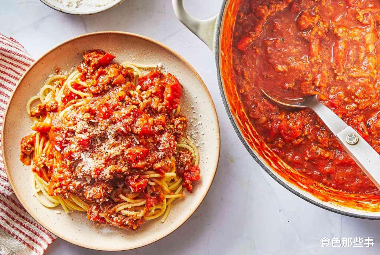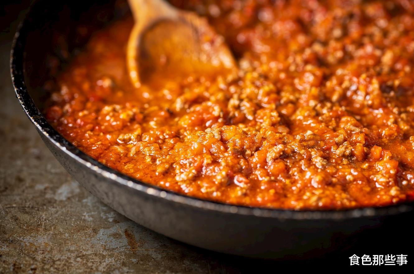 博洛尼亚肉酱:一种慢炖的肉酱,包含牛肉、猪肉、番茄和葡萄酒。