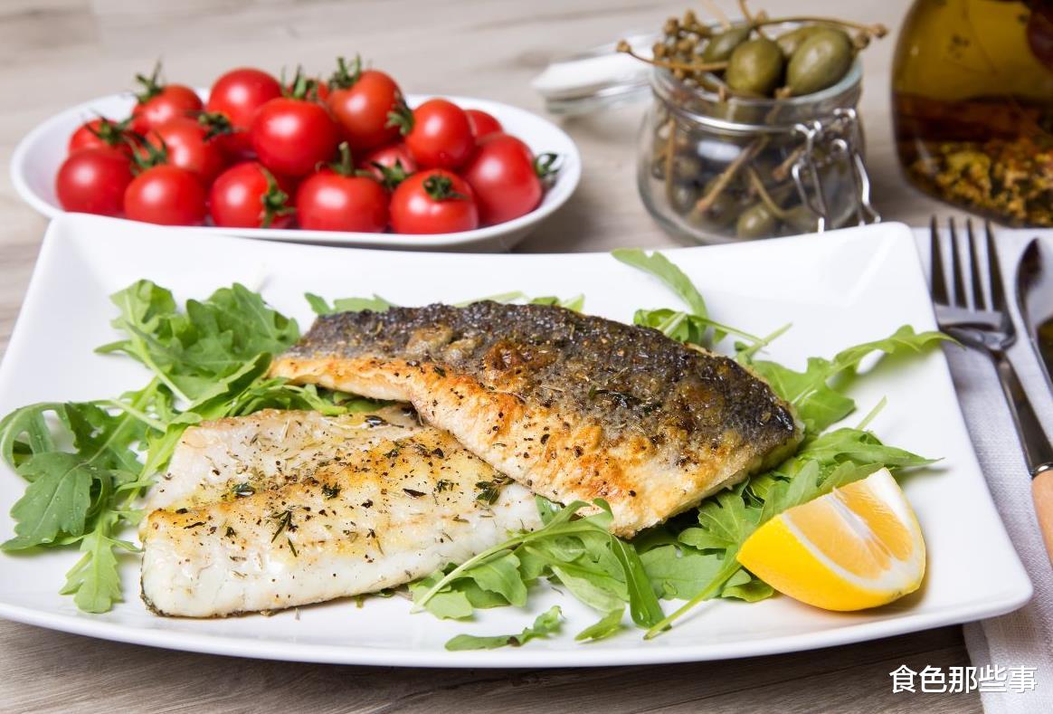 烤海鲈鱼:用橄榄油和柠檬烤箱烤制的地中海海鲈鱼。
