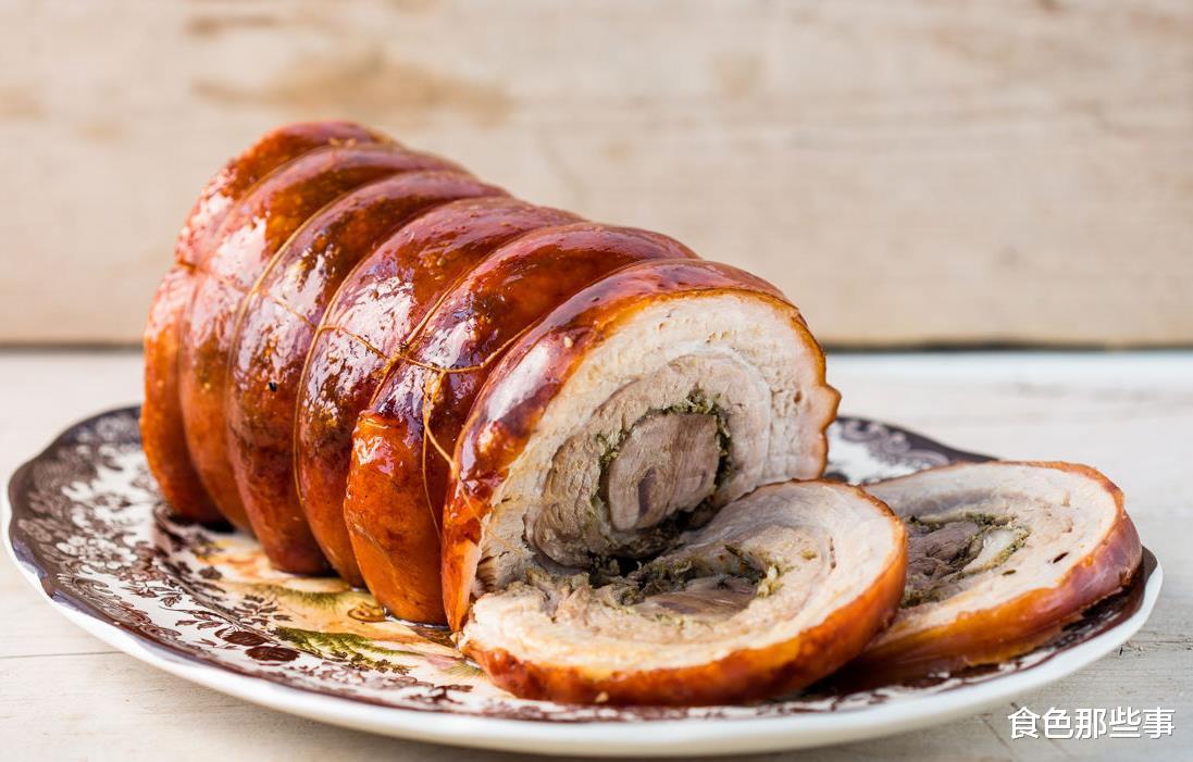 意式烤猪肉卷:一整只猪肉卷,用大蒜、迷迭香和茴香调味,慢火烤至外皮酥脆,内里嫩滑。
